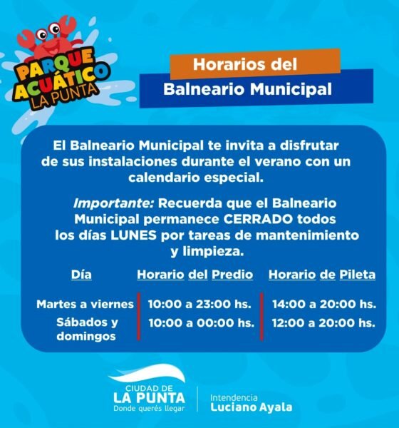 Con la llegada del verano, el Parque Acuático (Balneario Municipal de La Punta), se consolida nuevamente como uno de los espacios recreativos...